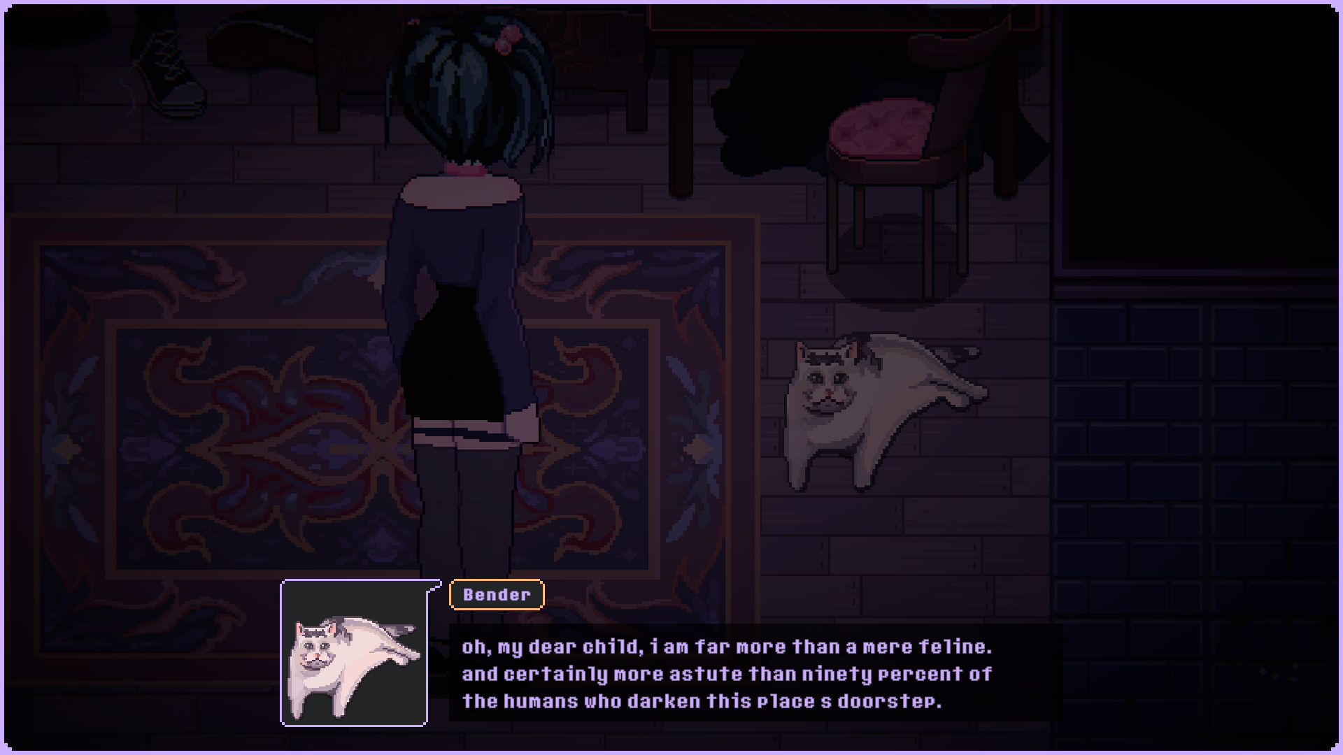 The music, the artstyle, the atmosphere - so cool and mysterious! Really love the subtle balance between serious and erotic. Hope to see this project released!